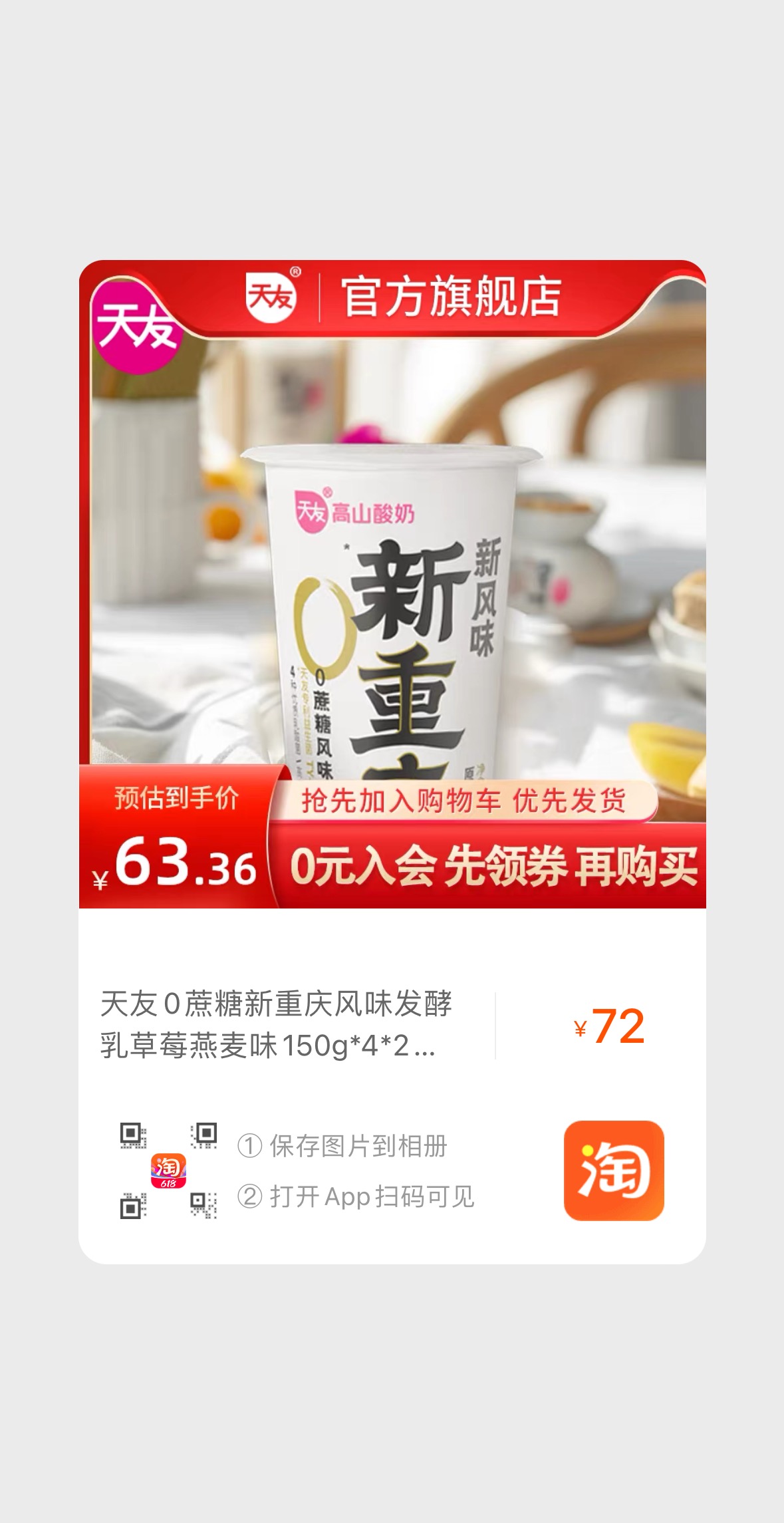 产品描述:该产品采用重庆高山牧场优质奶源发酵,含天友专利益生菌TY-S01+3种优质乳酸菌,0蔗糖轻负担,有原味、草莓燕麦味两种口味。