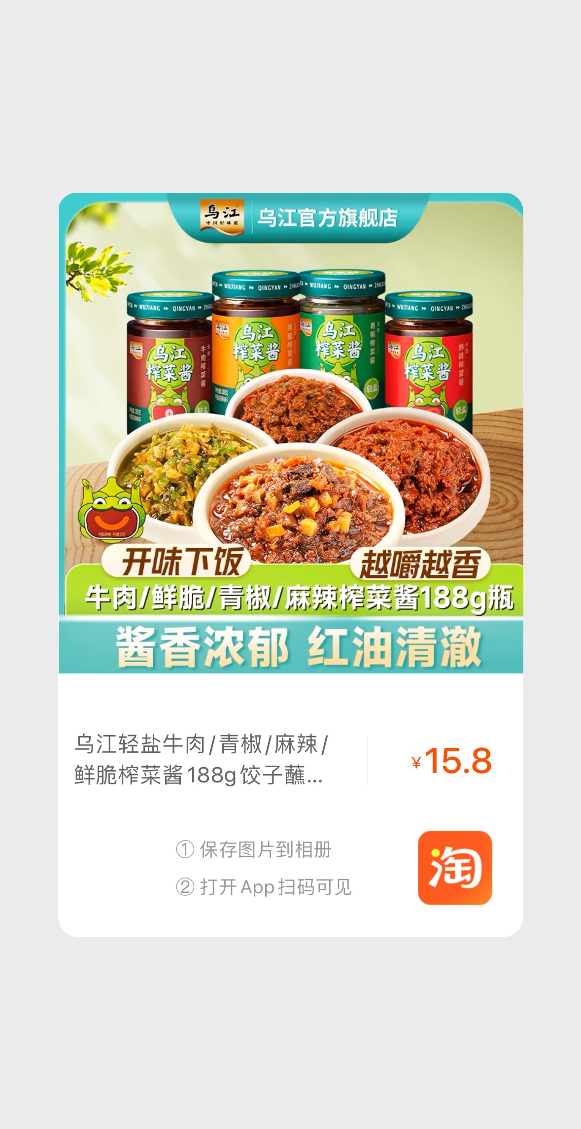 产品描述:该产品采用创新脱脂技术,选用川菜灵魂豆瓣酱和百搭解腻鲜脆榨菜硏制而成,既可烹饪,也可佐餐,目前有鲜脆榨菜酱、青椒榨菜酱、牛肉榨菜酱以及麻辣榨菜酱4个口味。