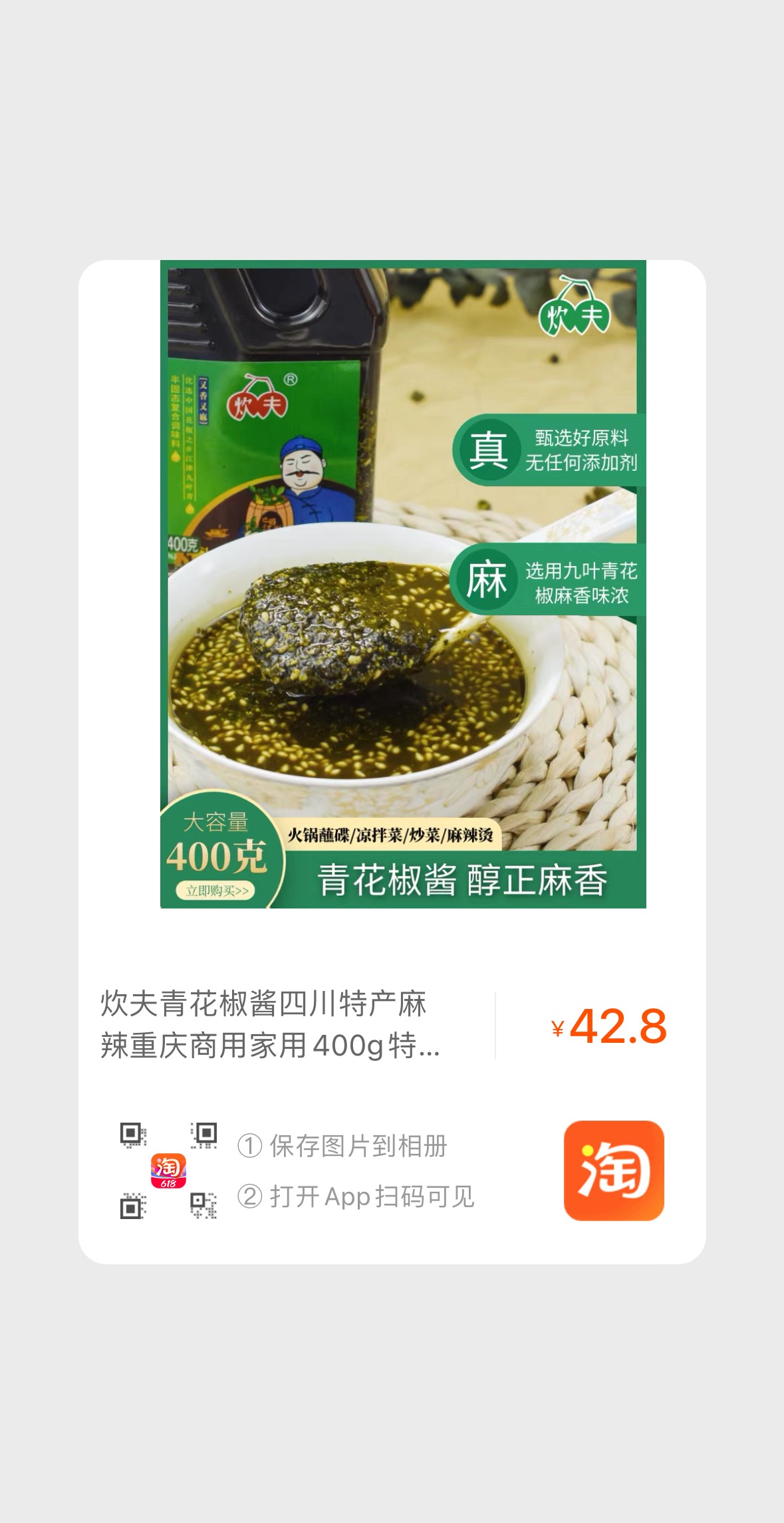 产品描述:江津九叶青花椒搭配植物油、白芝麻造就麻味醇厚的青花椒酱。